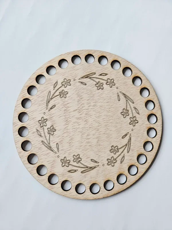 Houten bodem voor het haken van een prachtige mand.