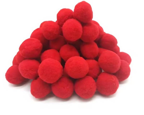 Of zakje met 20 pomp poms in rood, 8mm