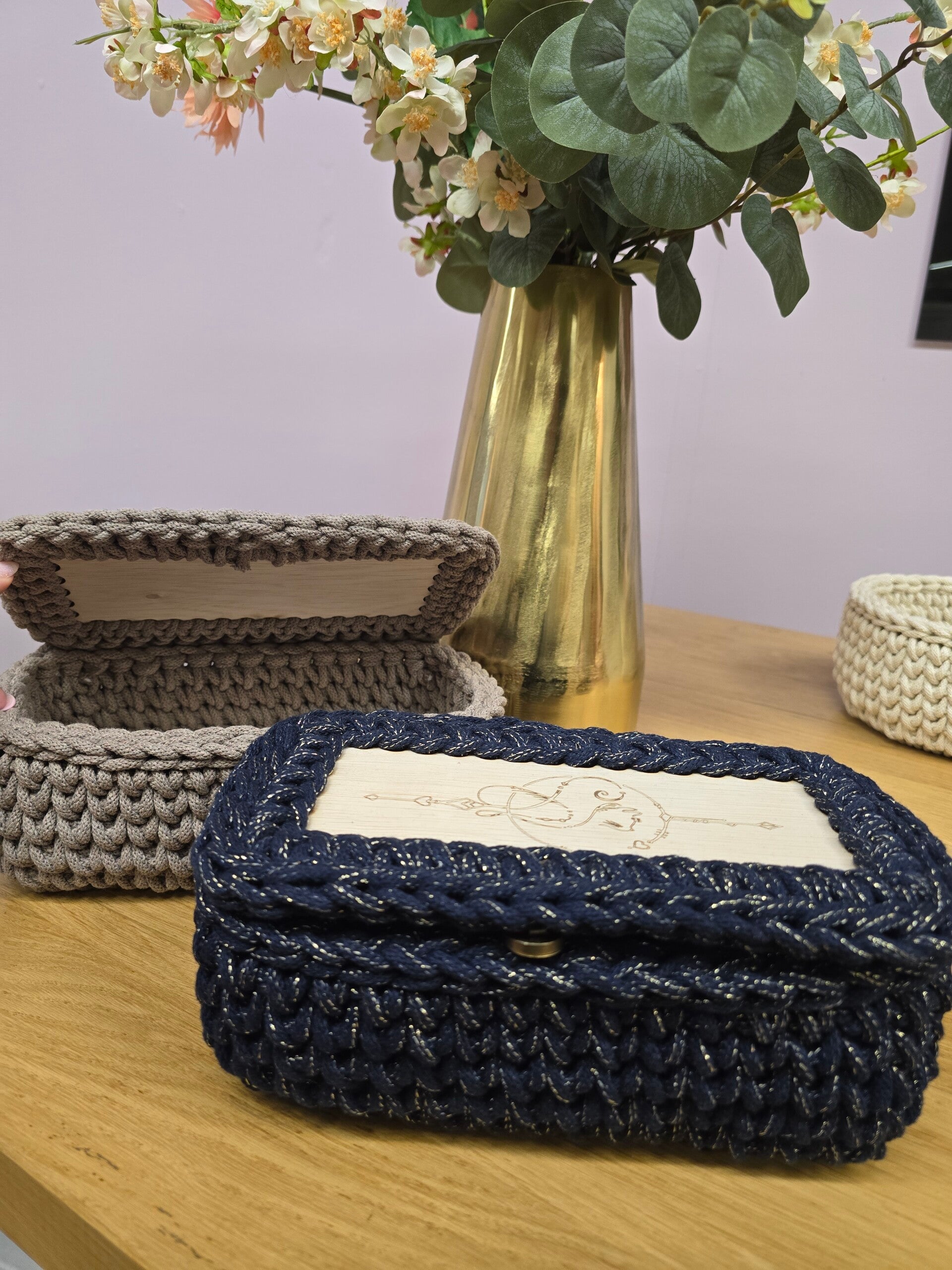 Na vele soorten gehaakte manden, nu ook manden met een klepdeksel!
